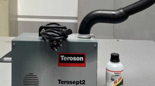 2) З використанням професійного обладнання для дезінфекції автокондиціонерів – ультразвукового апарату, який розпилює антисептичний засіб у вигляді дрібнодисперсного туману. Така дезінфекція автокондиціонера хлоргексидином допомагає обробити всі важкодоступні ділянки конструкції. У складних ситуаціях використовують шланг-пістолет, який працює в парі з ультразвуковим устаткуванням.